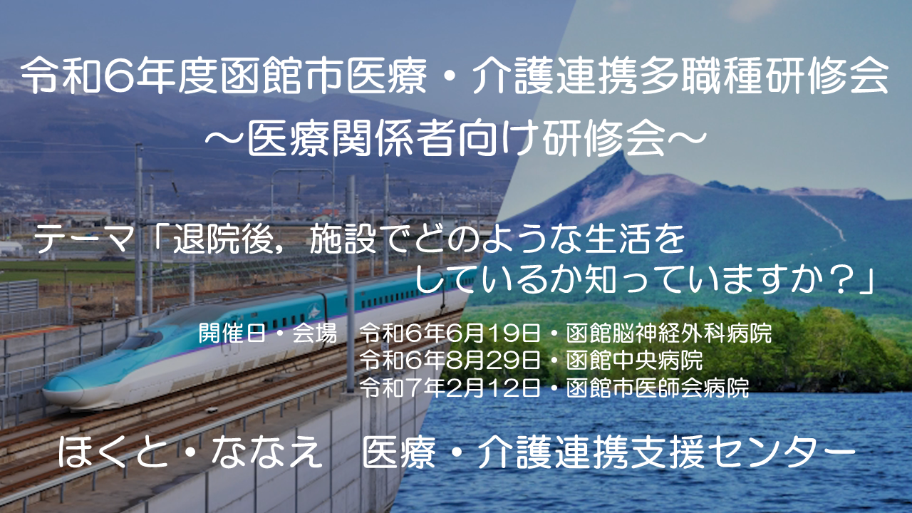 - 開催報告「令和7年度 ほくと・ななえ 医療・介護連携多職種研修(研修動画)」 「令和6年度 函館市医療・介護連携多職種研修会~医療関係者向け研修会~」