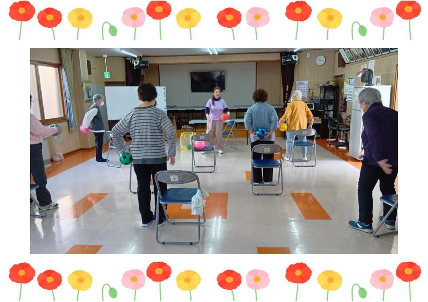 令和8年4月14日(火),千歳町会「ぴんぴんサロン」の皆さまと一緒に,椅子に座ったまま楽しめる体操の講座を開催しました。
