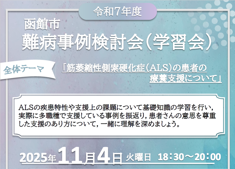 研修案内【令和7年11月4日開催】令和7年度函館市難病事例検討会(学習会)