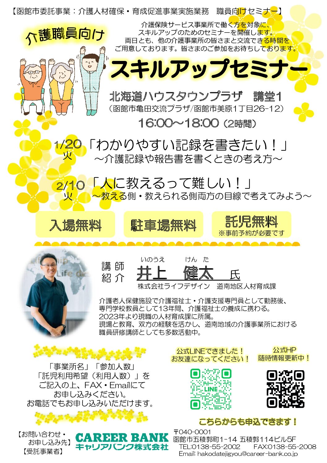研修案内【R8年1月20日,2月10日開催】「介護人材確保・育成促進事業実施業務 職員向けセミナー スキルアップセミナー」