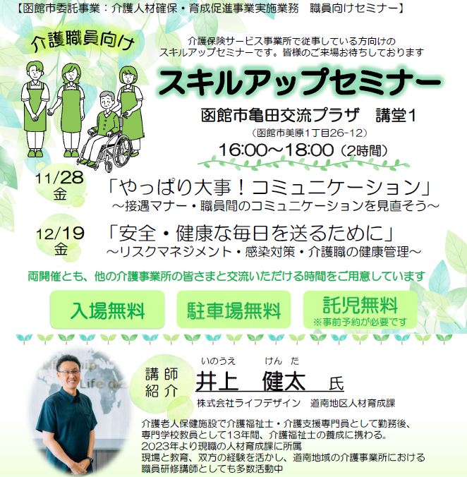 - 研修案内【R7年11月28日,12月19日開催】「介護職員向け スキルアップセミナー」