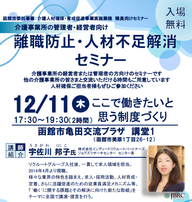 - 研修案内【R7年12月11日開催】「介護事業所の管理者・経営者向け 離職防止・人材不足解消セミナー」