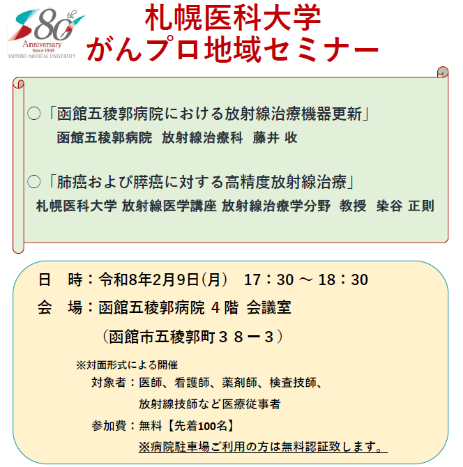 - 研修案内【R8年2月9日開催】「札幌医科大学がんプロ地域セミナー」