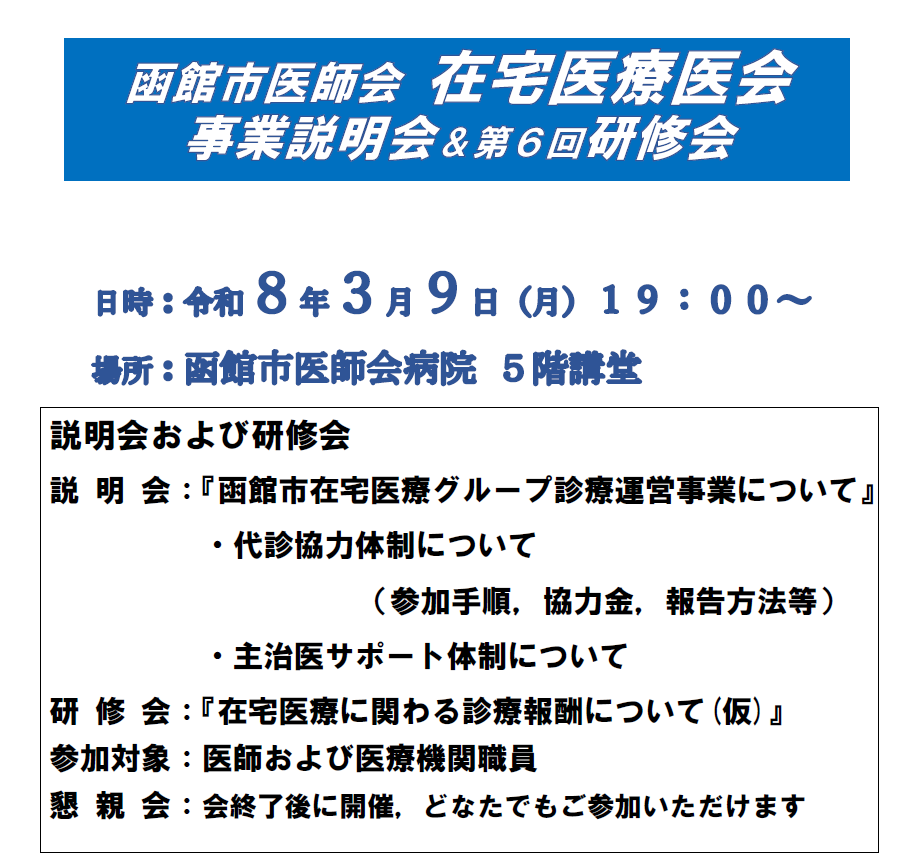 - 研修案内【令和8年3月9日開催】函館市医師会 在宅医療医会 事業説明会&研修会